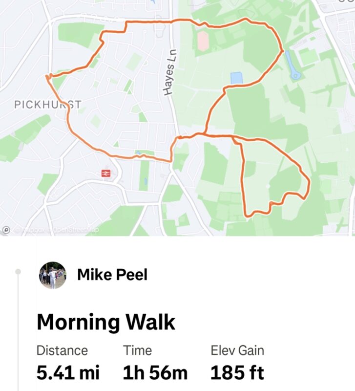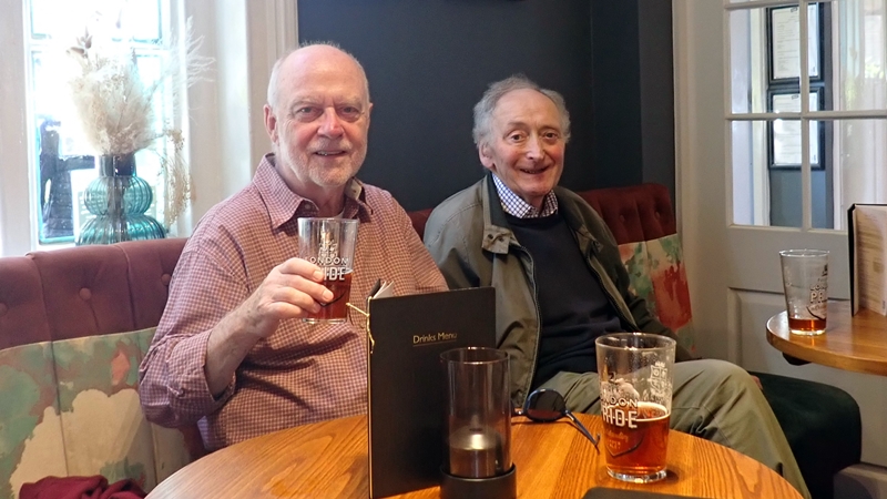 28 August 2025 – A Krawl around Farnborough. Small number but lage quality! Having met up at the Commonside car park we made our way via Wilberforce and High Elms to the nominated half-way house, The Change of Horses. It was 10 mins to twelve and looked as dead as a dodo, so we ambled up to The Woodman where we had a good pint. The pub was in better condition than we were last here… In due time we wandered back via the ponds, changed, and walk up to The Fox where we had a very nice meal in their private room. My GPS played up and we probably only did around seven miles.